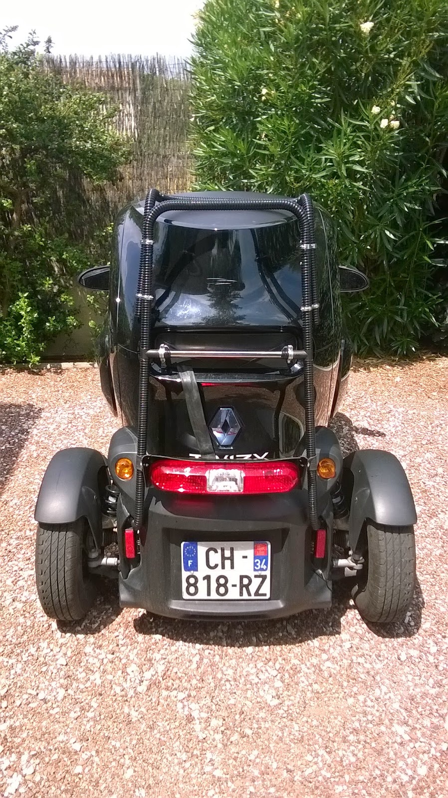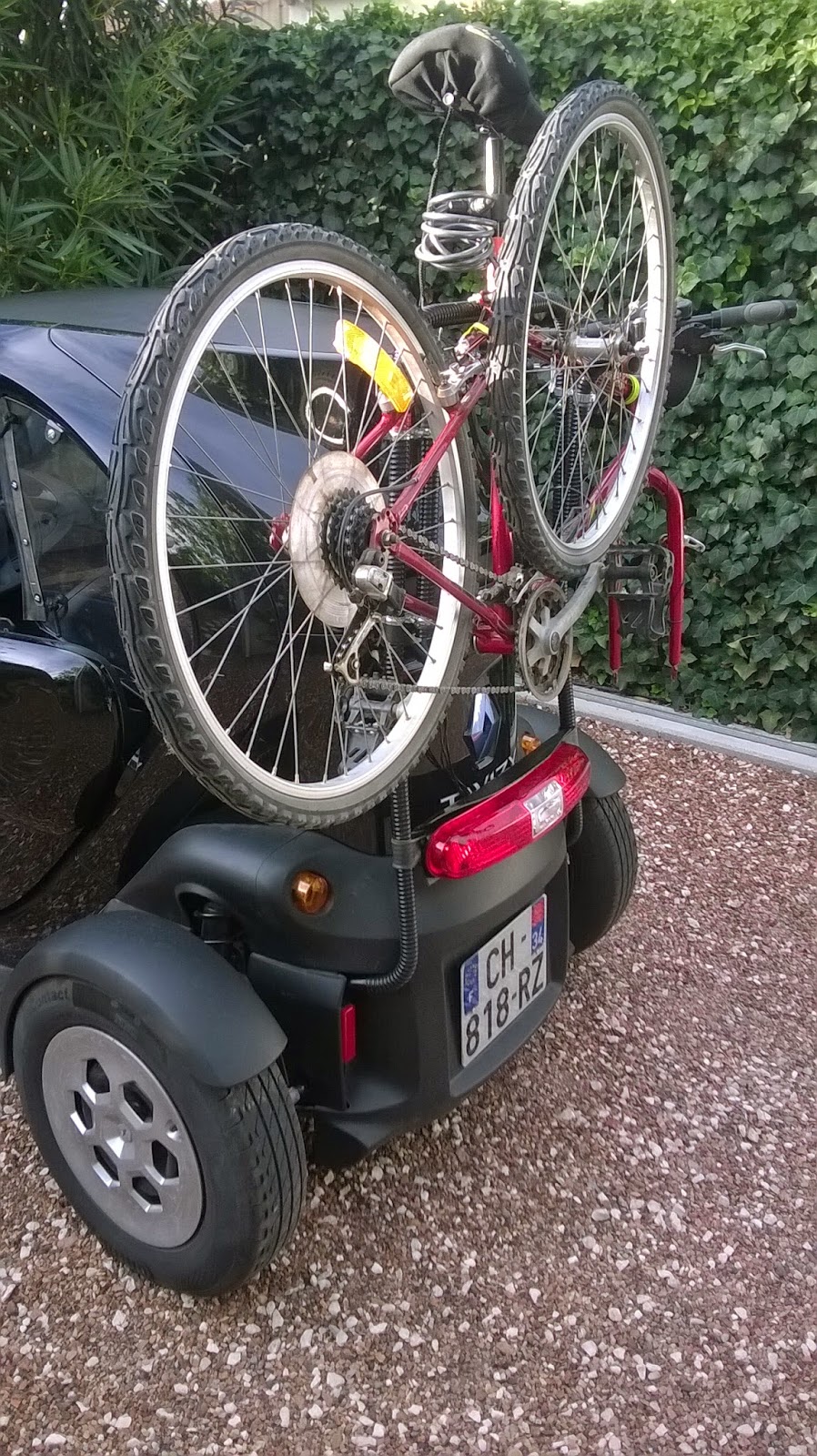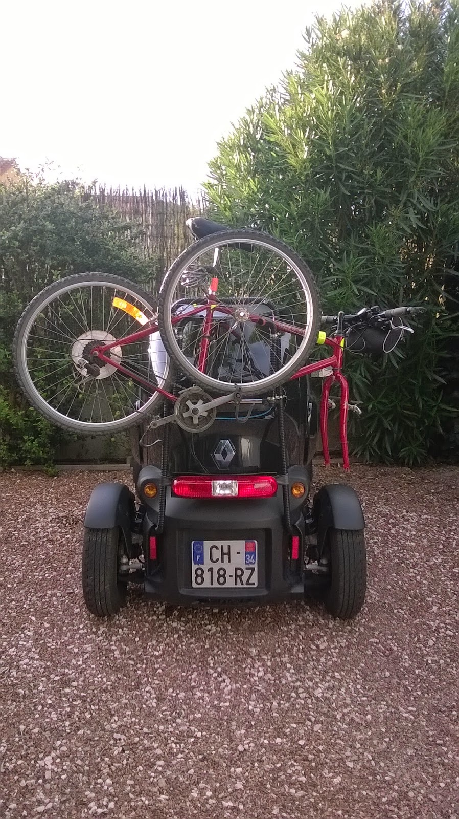 Some drawbacks though: Multigo is heavier (3.5 kg vs. 2.5 kg) and costs € 150 against € 120 for Trigo ... But remember that the only Twizy luggage rack, sold by Elia, costs at least € 600 and is not a bike rack.
